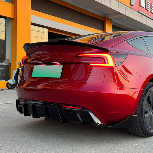 Opgrader din Tesla Model 3 (2023+) med denne bagdiffuser og sidesplitter. Produktet giver bilen et aggressivt, sporty udseende og forbedrer aerodyn...
